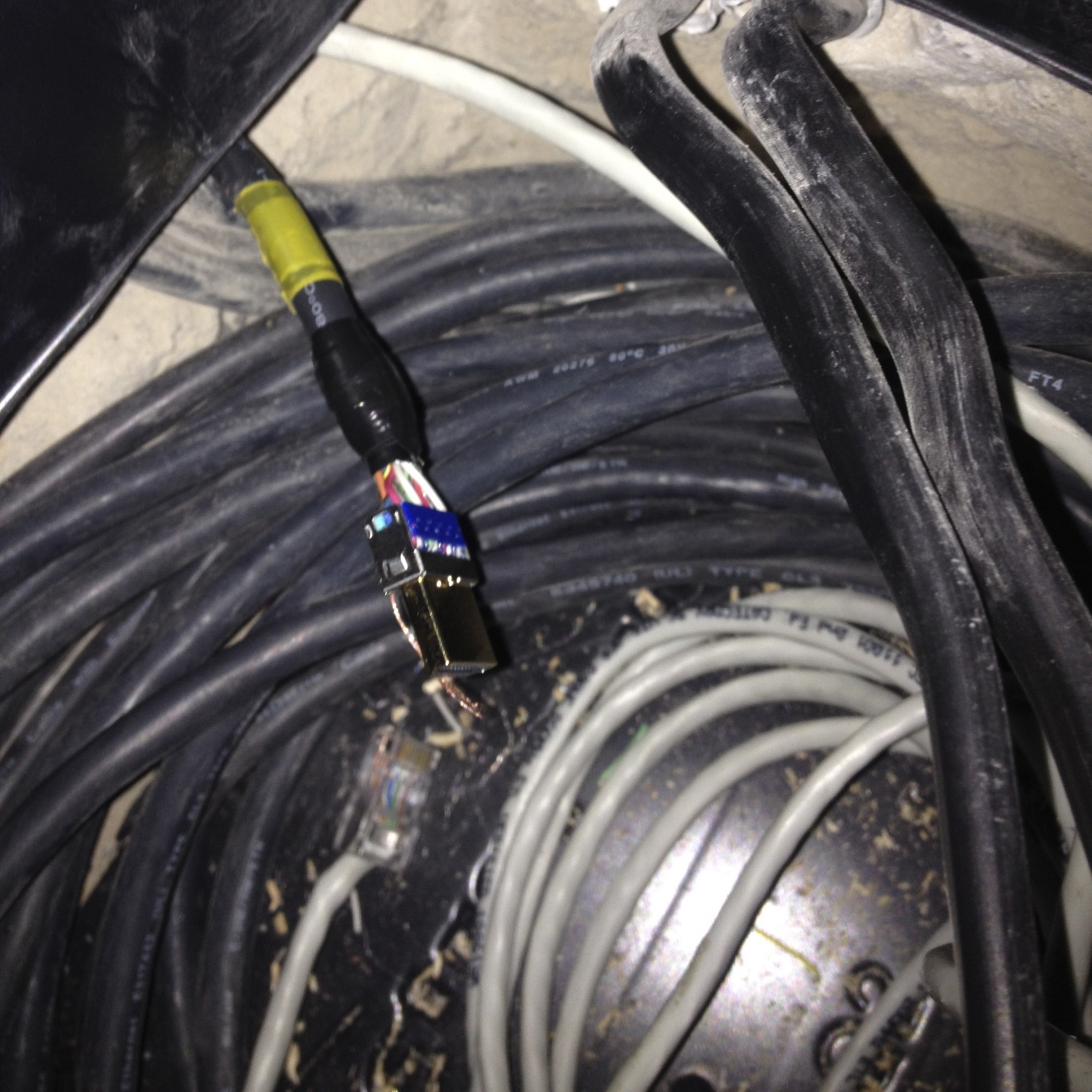 Если отрезанный кусок кабеля с разъемом потерян, или же просто поврежден сам разъем – он развалился, вылетел штекер, оторвался контакт и т.д. возможно отремонтировать кабель, составив карту разъема при помощи прозвонки кабеля. Составляется карта разъема по цветам, и после этого ремонт HDMI кабеля осуществляется путем обжатия новым разъемом. Стандарта на цвета в кабеле нет, поэтому для каждого конкретного кабеля составляется карта. Стоимость ремонта: 6500 руб.